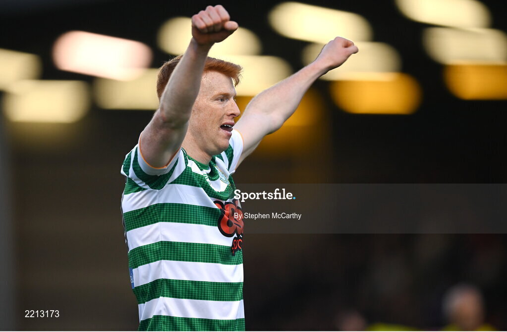 22 April 2022; Rory Gaffney of Shamrock Rovers celebrates his side's second goal during the SSE Airtricity League Premier Division match between Bohemians and Shamrock Rovers at Dalymount Park in Dublin. Photo by Stephen McCarthy/Sportsfile