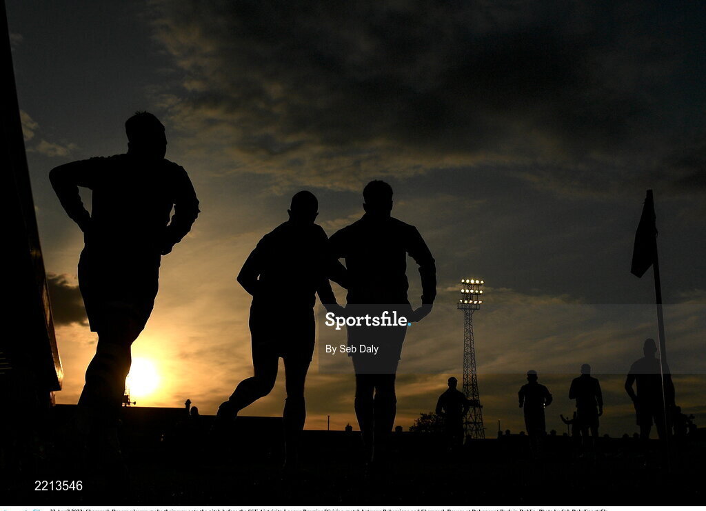22 April 2022; Shamrock Rovers players make their way onto the pitch before the SSE Airtricity League Premier Division match between Bohemians and Shamrock Rovers at Dalymount Park in Dublin. Photo by Seb Daly/Sportsfile