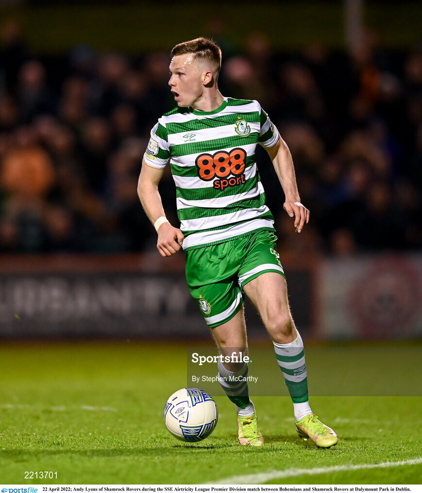22 April 2022; Andy Lyons of Shamrock Rovers during the SSE Airtricity League Premier Division match between Bohemians and Shamrock Rovers at Dalymount Park in Dublin. Photo by Stephen McCarthy/Sportsfile