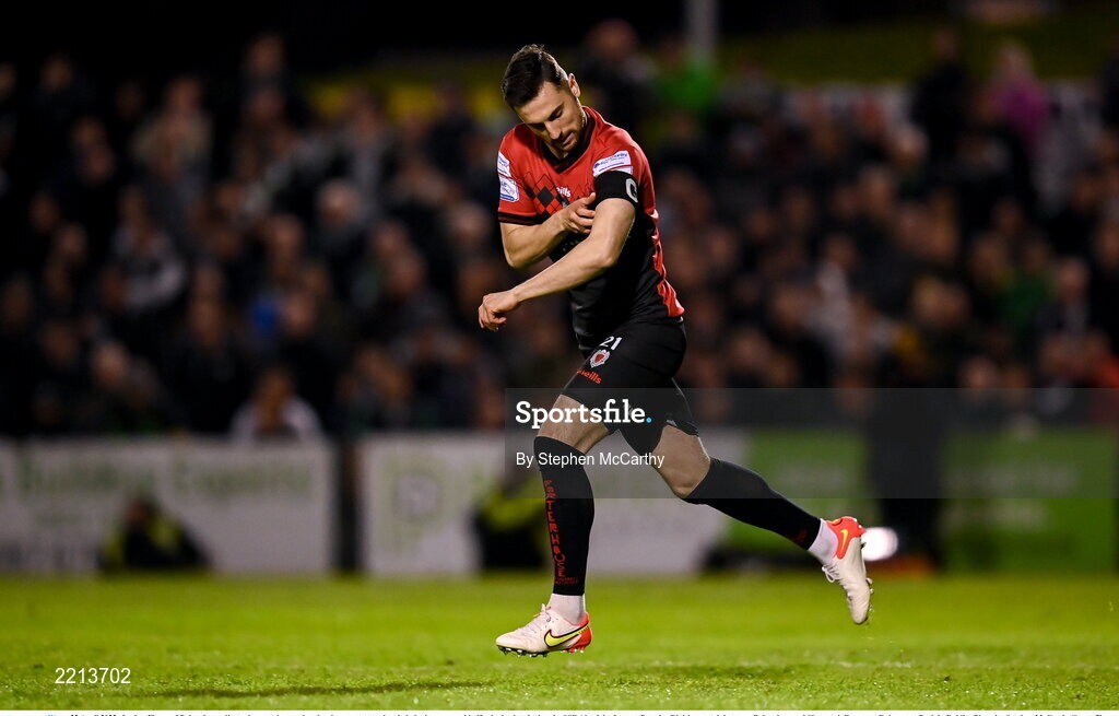 22 April 2022; Jordan Flores of Bohemians adjusts the captains armband as he comes onto the pitch during a second half substitution during the SSE Airtricity League Premier Division match between Bohemians and Shamrock Rovers at Dalymount Park in Dublin. Photo by Stephen McCarthy/Sportsfile