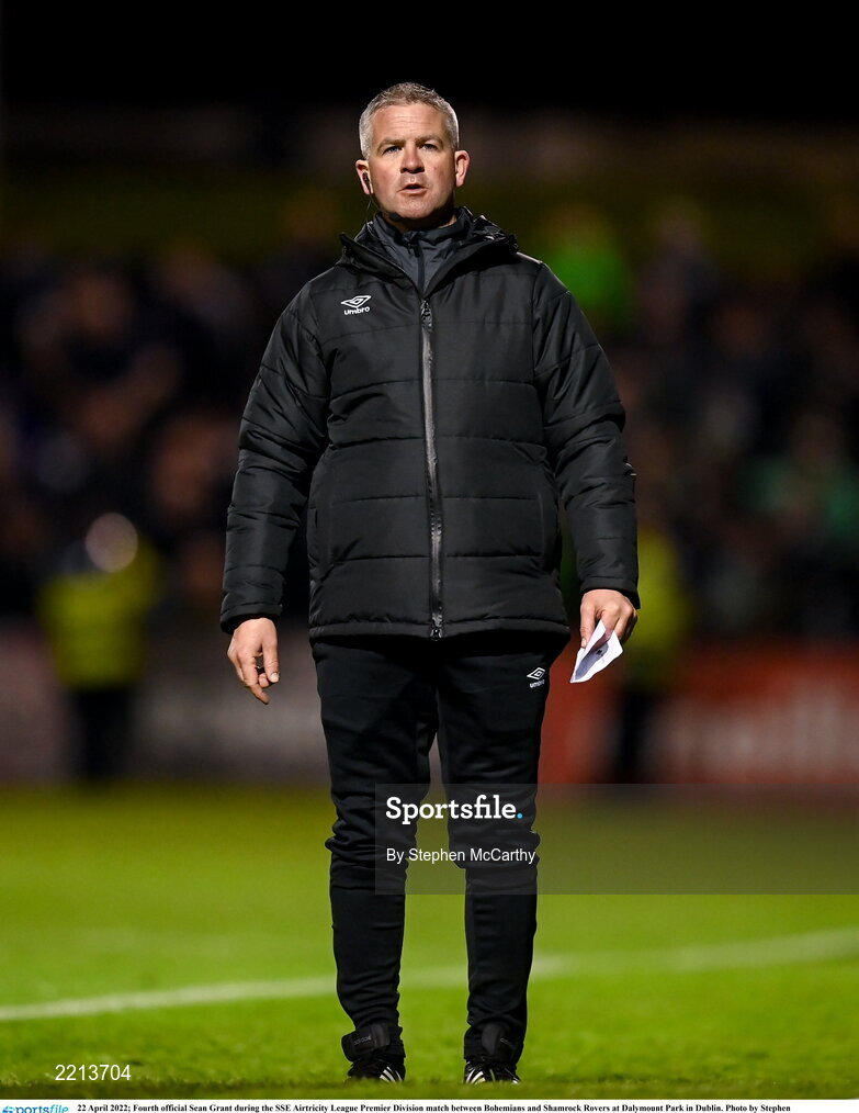 22 April 2022; Fourth official Sean Grant during the SSE Airtricity League Premier Division match between Bohemians and Shamrock Rovers at Dalymount Park in Dublin. Photo by Stephen McCarthy/Sportsfile