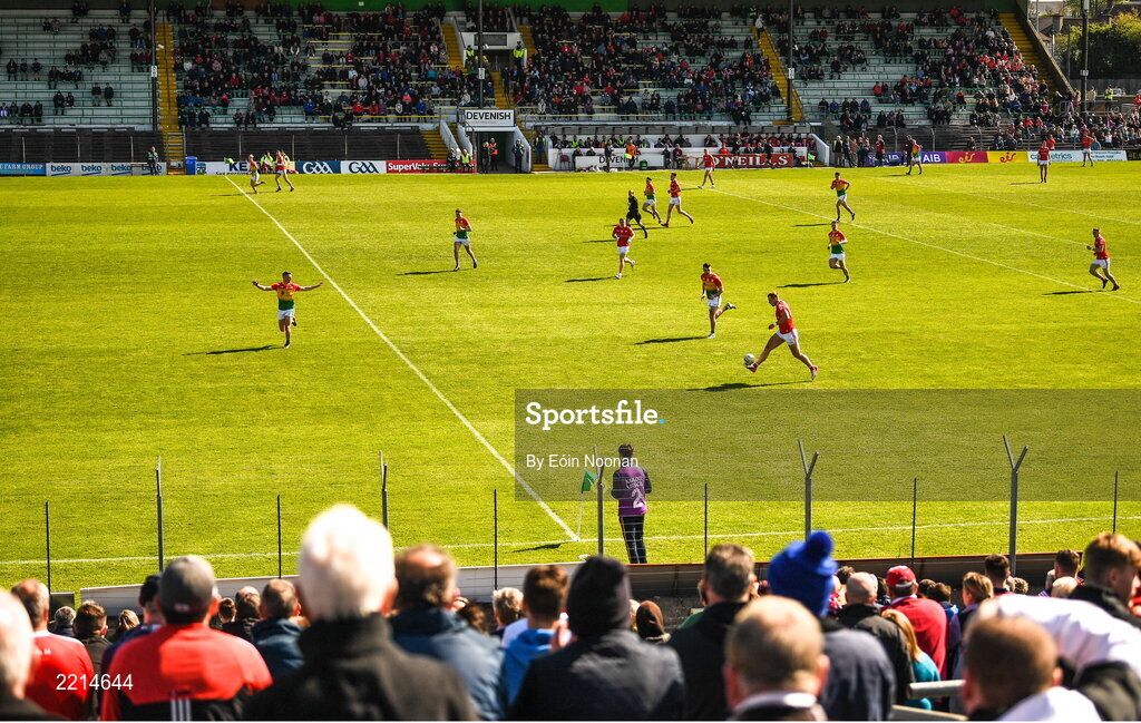 24 April 2022; A general view of action during the Leinster GAA Football Senior Championship Round 1 match between Louth and Carlow at Páirc Tailteann in Navan, Meath. Photo by Eóin Noonan/Sportsfile