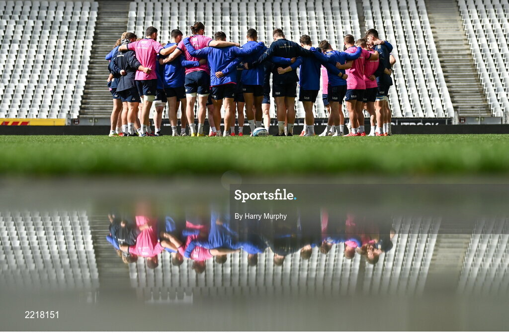 29 April 2022; Leinster players huddle during a Leinster Rugby Captain's Run at the DHL Stadium in Cape Town, South Africa. Photo by Harry Murphy/Sportsfile