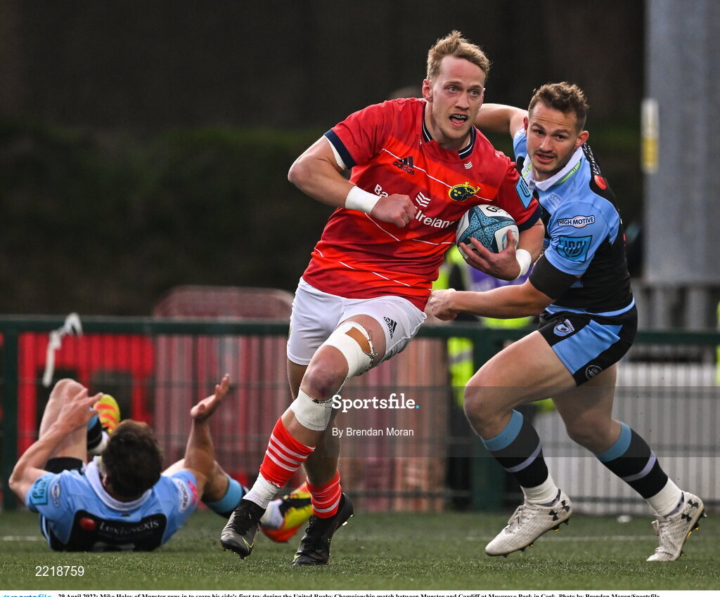 29 April 2022; Mike Haley of Munster runs in to score his side's first try during the United Rugby Championship match between Munster and Cardiff at Musgrave Park in Cork. Photo by Brendan Moran/Sportsfile