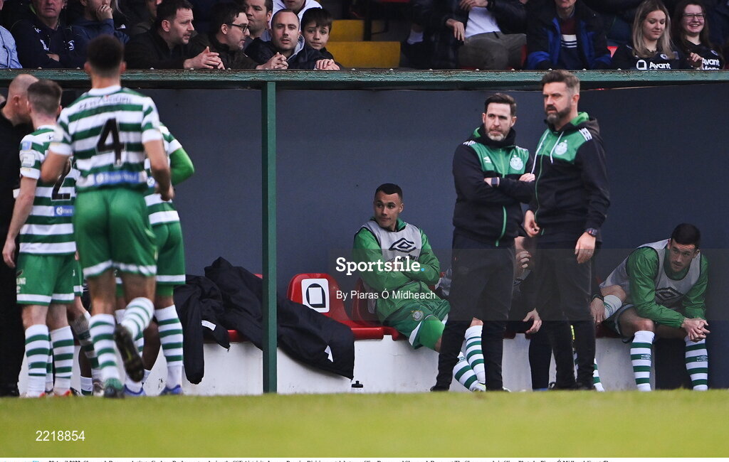 29 April 2022; Shamrock Rovers substitute Graham Burke, centre, during the SSE Airtricity League Premier Division match between Sligo Rovers and Shamrock Rovers at The Showgrounds in Sligo. Photo by Piaras Ó Mídheach/Sportsfile