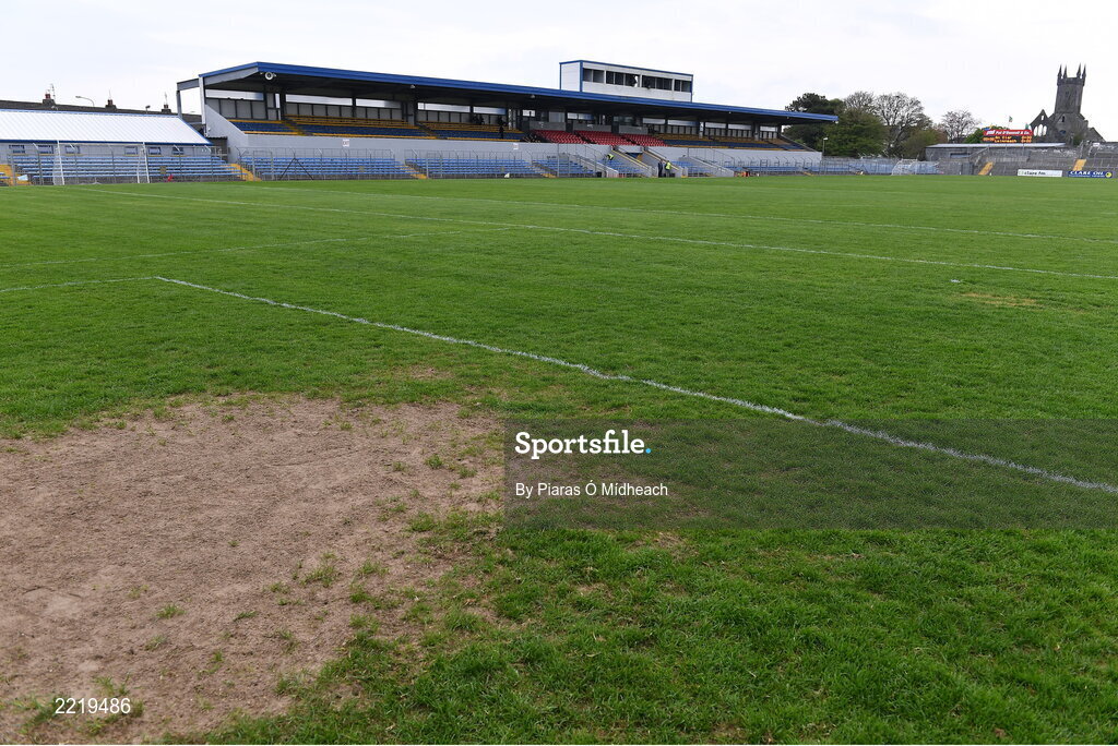 30 April 2022; A general view of the pitch before the Munster GAA Senior Football Championship Quarter-Final match between Clare and Limerick at Cusack Park in Ennis, Clare. Photo by Piaras Ó Mídheach/Sportsfile