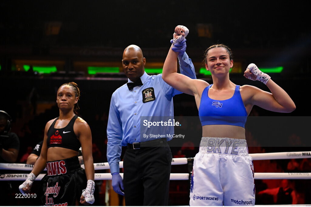 30 April 2022; Skye Nicolson is declared victorious following her featherweight bout with Shanecqua Paisley Davis at Madison Square Garden in New York, USA. Photo by Stephen McCarthy/Sportsfile