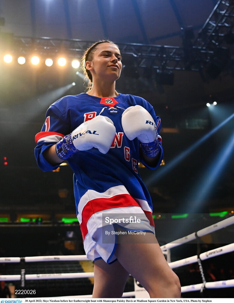 30 April 2022; Skye Nicolson before her featherweight bout with Shanecqua Paisley Davis at Madison Square Garden in New York, USA. Photo by Stephen McCarthy/Sportsfile