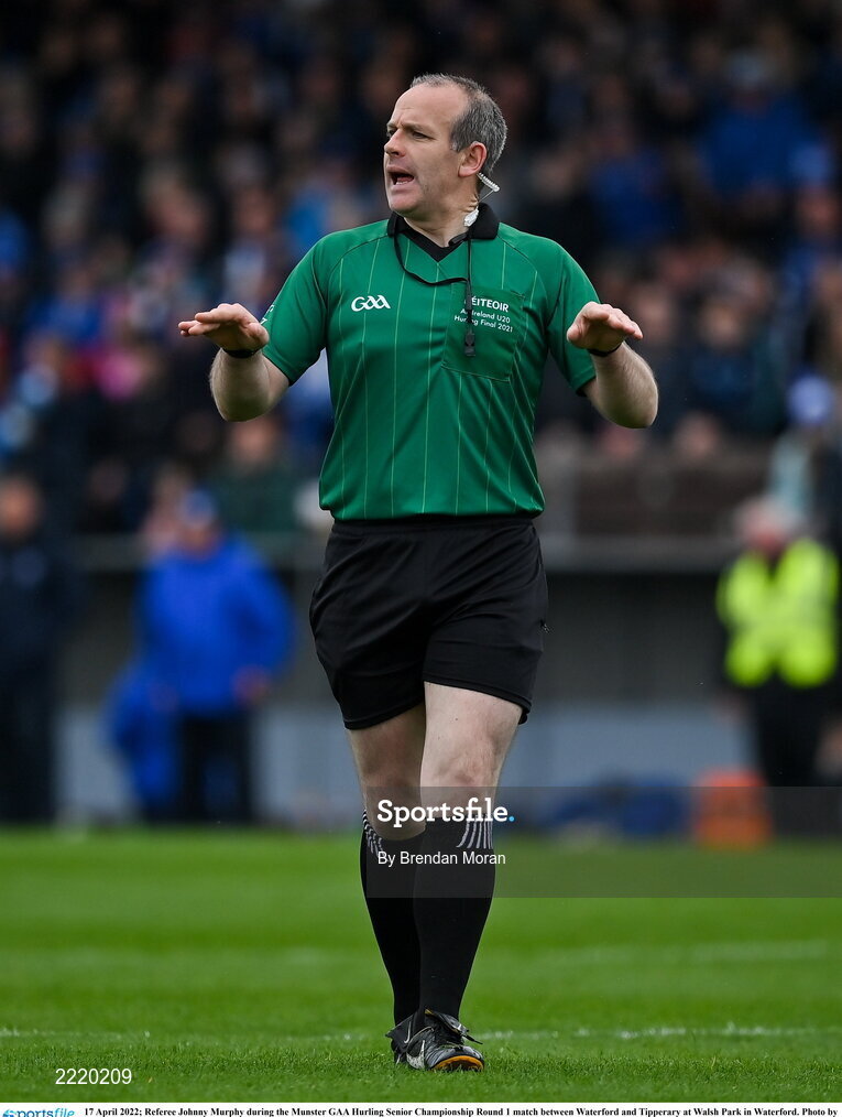 17 April 2022; Referee Johnny Murphy during the Munster GAA Hurling Senior Championship Round 1 match between Waterford and Tipperary at Walsh Park in Waterford. Photo by Brendan Moran/Sportsfile