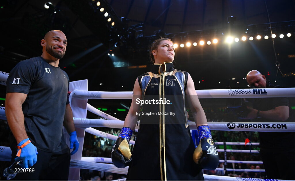 30 April 2022; Katie Taylor and trainer Ross Enamait before her undisputed world lightweight championship fight with Amanda Serrano at Madison Square Garden in New York, USA. Photo by Stephen McCarthy/Sportsfile