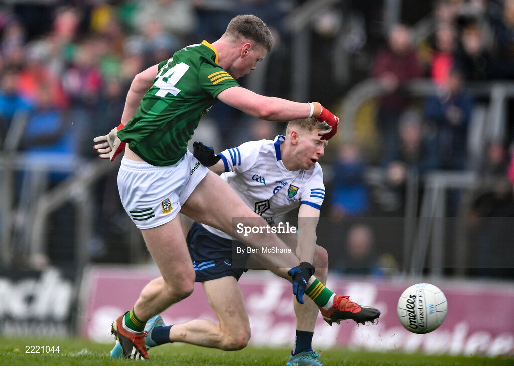 1 May 2022; Mathew Costello of Meath scores his side's third goal despite the attention of Andy Maher of Wicklow during the Leinster GAA Football Senior Championship Quarter-Final match between Meath and Wicklow at Páirc Tailteann in Navan, Meath. Photo by Ben McShane/Sportsfile