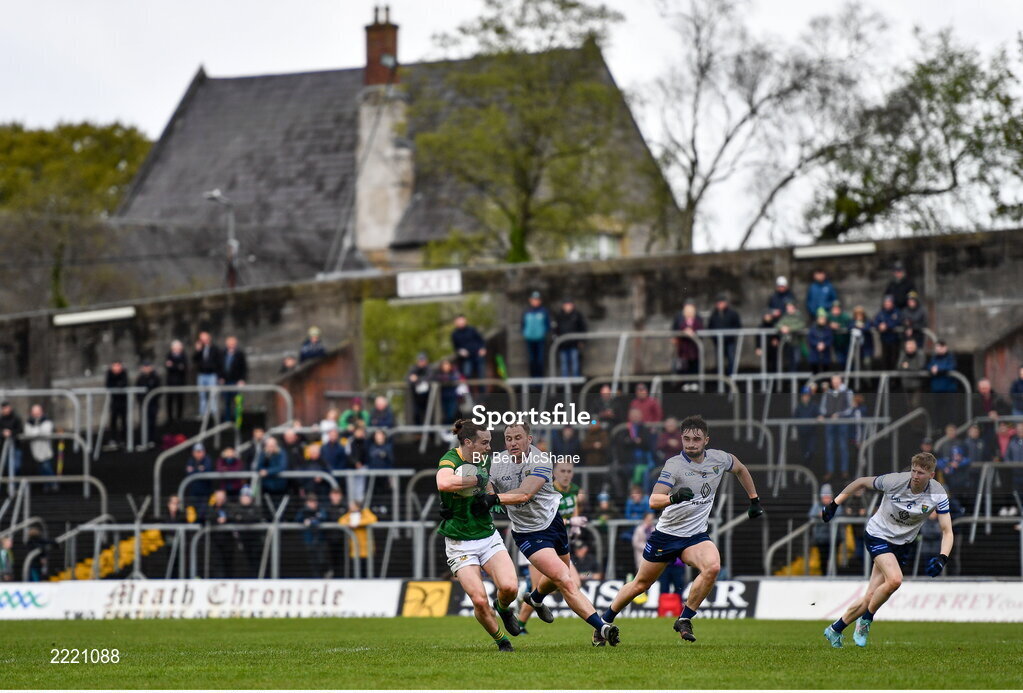 1 May 2022; Cillian O'Sullivan of Meath and Dean Healy of Wicklow during the Leinster GAA Football Senior Championship Quarter-Final match between Meath and Wicklow at Páirc Tailteann in Navan, Meath. Photo by Ben McShane/Sportsfile