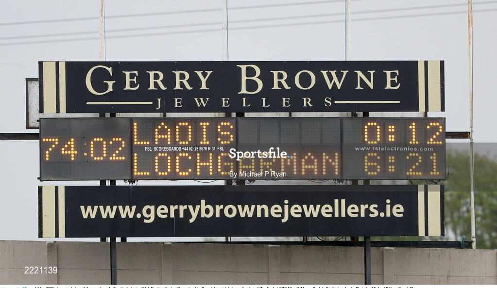 1 May 2022; A general view of the scoreboard after the Leinster GAA Hurling Senior Championship Round 3 match between Laois and Wexford at MW Hire O’Moore Park in Portlaoise, Laois. Photo by Michael P Ryan/Sportsfile