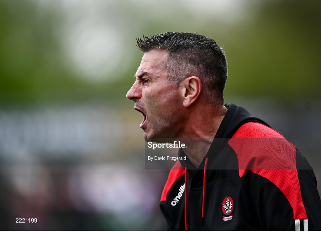 1 May 2022; Derry manager Rory Gallagher during the Ulster GAA Football Senior Championship Quarter-Final match between Tyrone and Derry at O'Neills Healy Park in Omagh, Tyrone. Photo by David Fitzgerald/Sportsfile