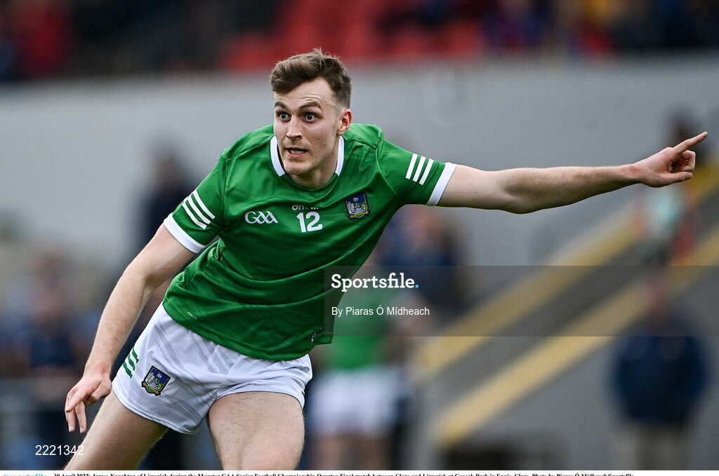 30 April 2022; James Naughton of Limerick during the Munster GAA Senior Football Championship Quarter-Final match between Clare and Limerick at Cusack Park in Ennis, Clare. Photo by Piaras Ó Mídheach/Sportsfile