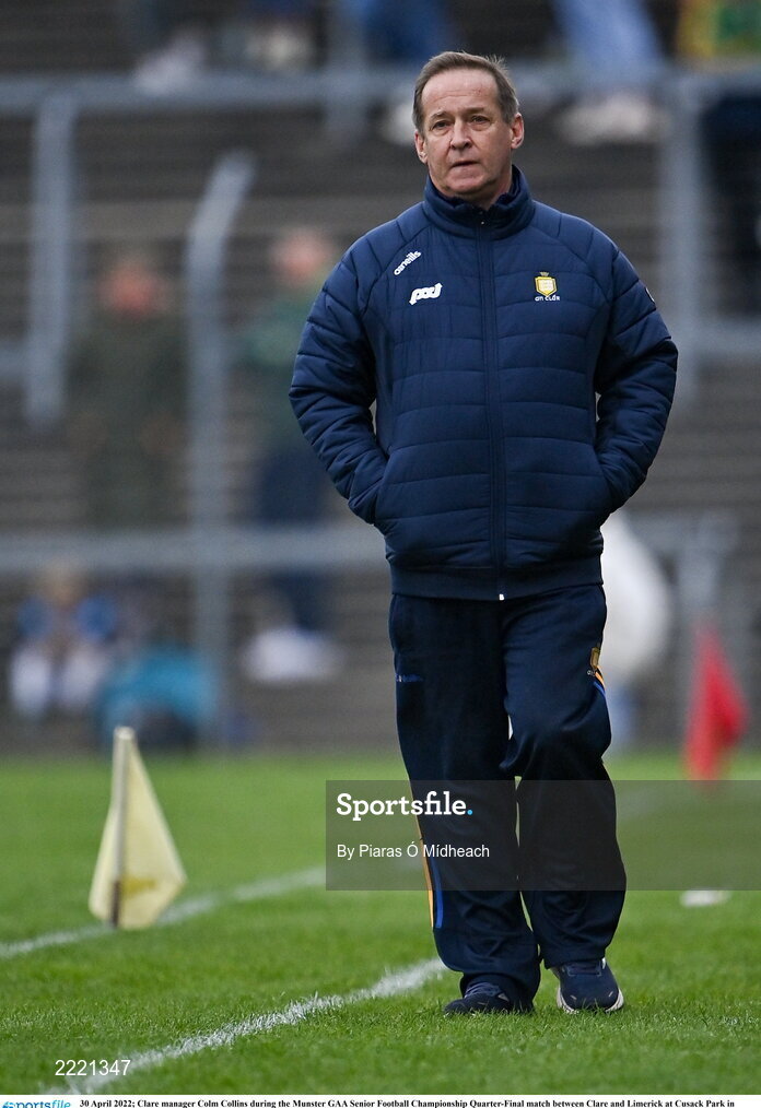 30 April 2022; Clare manager Colm Collins during the Munster GAA Senior Football Championship Quarter-Final match between Clare and Limerick at Cusack Park in Ennis, Clare. Photo by Piaras Ó Mídheach/Sportsfile