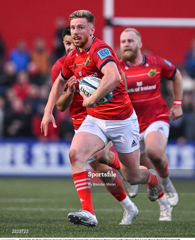 29 April 2022; Ben Healy of Munster during the United Rugby Championship match between Munster and Cardiff at Musgrave Park in Cork. Photo by Brendan Moran/Sportsfile