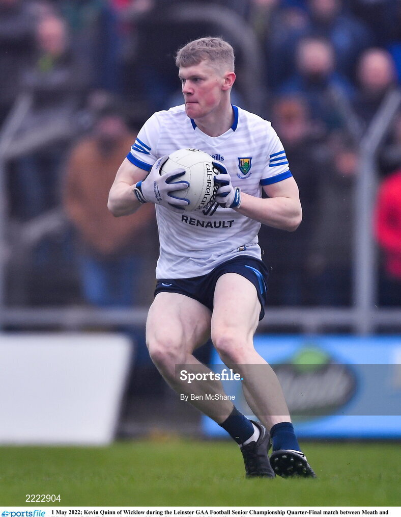 1 May 2022; Kevin Quinn of Wicklow during the Leinster GAA Football Senior Championship Quarter-Final match between Meath and Wicklow at Páirc Tailteann in Navan, Meath. Photo by Ben McShane/Sportsfile