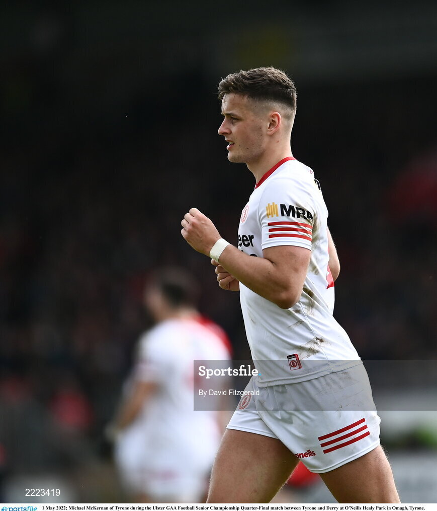 1 May 2022; Michael McKernan of Tyrone during the Ulster GAA Football Senior Championship Quarter-Final match between Tyrone and Derry at O'Neills Healy Park in Omagh, Tyrone. Photo by David Fitzgerald/Sportsfile