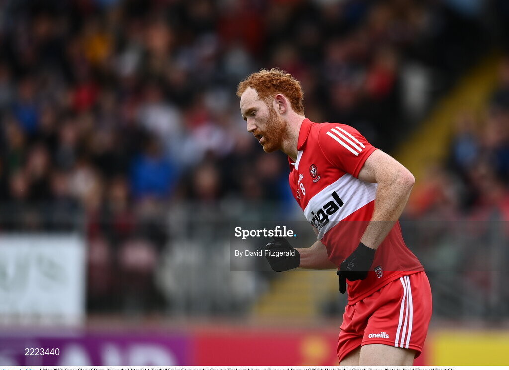 1 May 2022; Conor Glass of Derry during the Ulster GAA Football Senior Championship Quarter-Final match between Tyrone and Derry at O'Neills Healy Park in Omagh, Tyrone. Photo by David Fitzgerald/Sportsfile