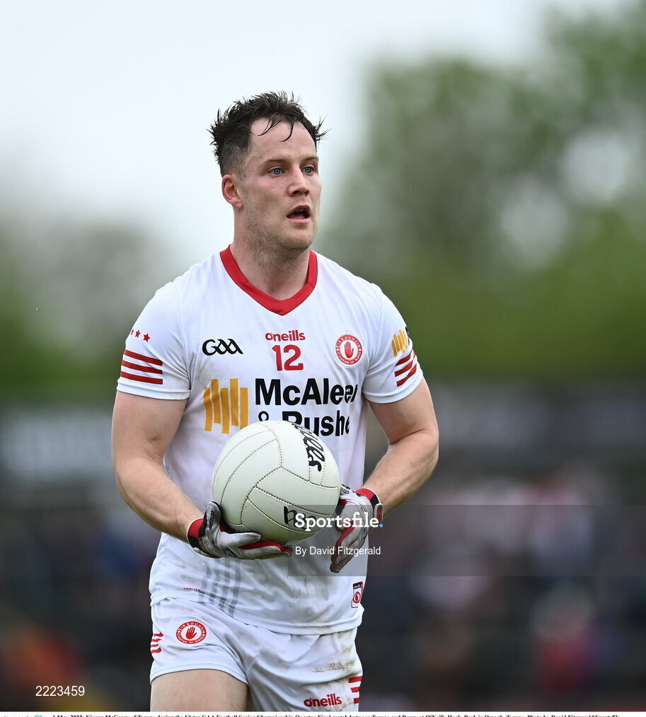 1 May 2022; Kieran McGeary of Tyrone during the Ulster GAA Football Senior Championship Quarter-Final match between Tyrone and Derry at O'Neills Healy Park in Omagh, Tyrone. Photo by David Fitzgerald/Sportsfile