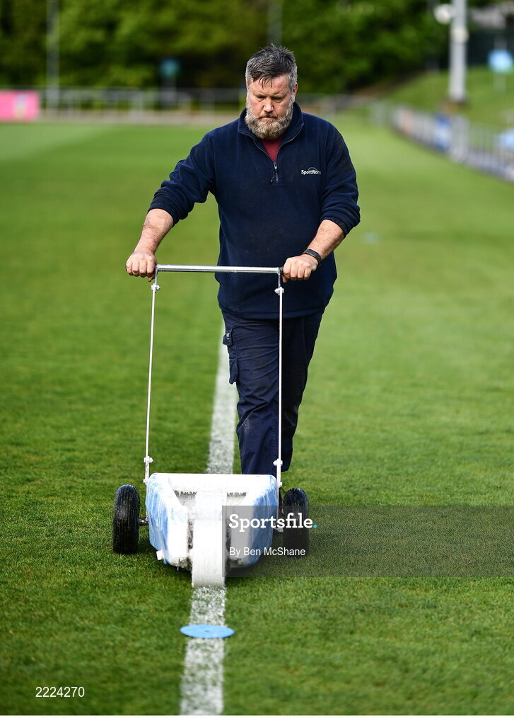 6 May 2022; UCD groundsman Ollie Ennis lines the pitch before the SSE Airtricity League Premier Division match between UCD and Dundalk at UCD Bowl in Belfield, Dublin. Photo by Ben McShane/Sportsfile