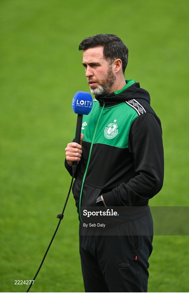6 May 2022; Shamrock Rovers manager Stephen Bradley is interviewed by LOITV before the SSE Airtricity League Premier Division match between Shamrock Rovers and Finn Harps at Tallaght Stadium in Dublin. Photo by Seb Daly/Sportsfile