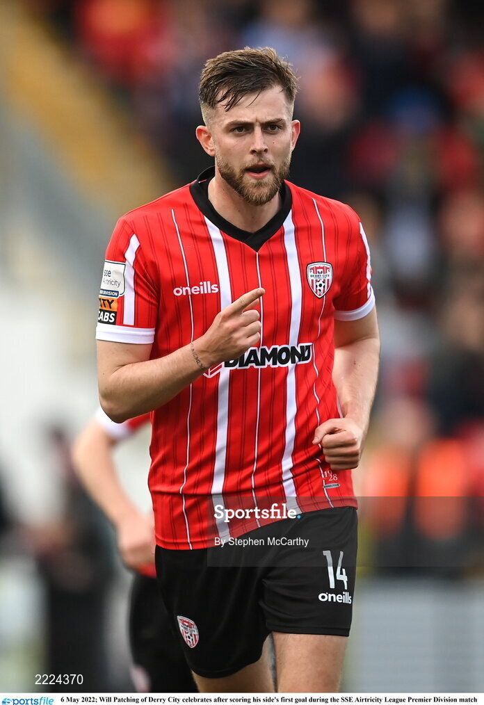 6 May 2022; Will Patching of Derry City celebrates after scoring his side's first goal during the SSE Airtricity League Premier Division match between Derry City and Bohemians at The Ryan McBride Brandywell Stadium in Derry. Photo by Stephen McCarthy/Sportsfile