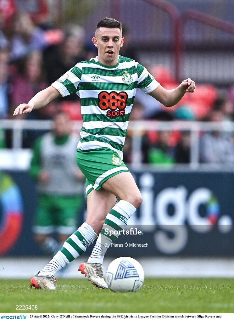 29 April 2022; Gary O'Neill of Shamrock Rovers during the SSE Airtricity League Premier Division match between Sligo Rovers and Shamrock Rovers at The Showgrounds in Sligo. Photo by Piaras Ó Mídheach/Sportsfile