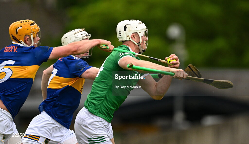 8 May 2022; Kyle Hayes of Limerick is tackled by Ronan Maher, left, and Seamus Kennedy of Tipperary during the Munster GAA Hurling Senior Championship Round 3 match between Limerick and Tipperary at TUS Gaelic Grounds in Limerick. Photo by Ray McManus/Sportsfile