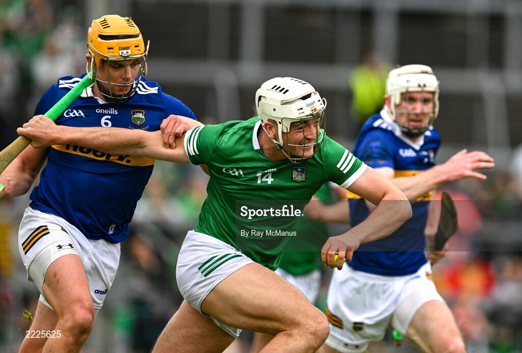 8 May 2022; Kyle Hayes of Limerick is tackled by Ronan Maher of Tipperary during the Munster GAA Hurling Senior Championship Round 3 match between Limerick and Tipperary at TUS Gaelic Grounds in Limerick. Photo by Ray McManus/Sportsfile