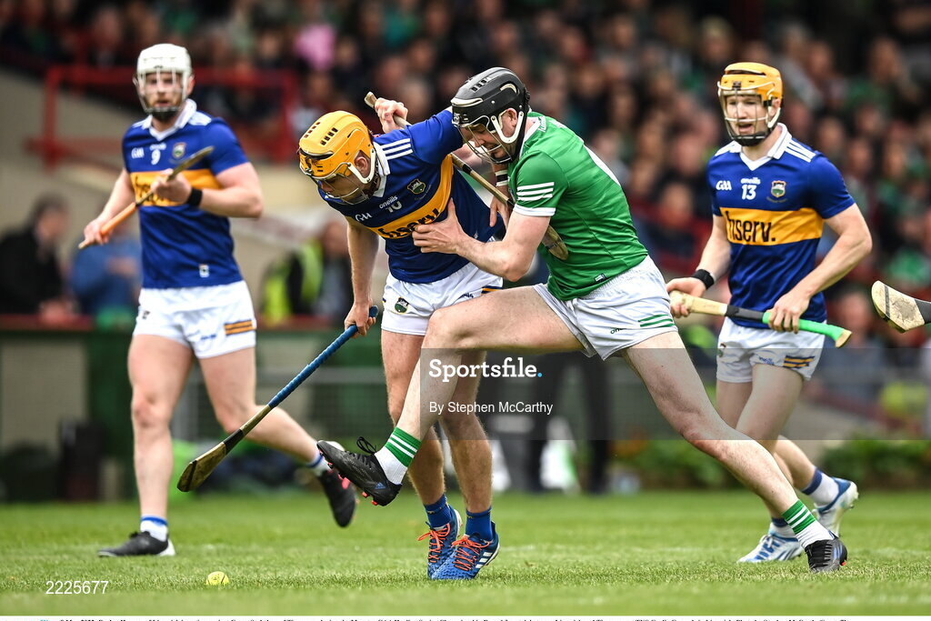 8 May 2022; Declan Hannon of Limerick in action against Conor Stakelum of Tipperary during the Munster GAA Hurling Senior Championship Round 3 match between Limerick and Tipperary at TUS Gaelic Grounds in Limerick. Photo by Stephen McCarthy/Sportsfile