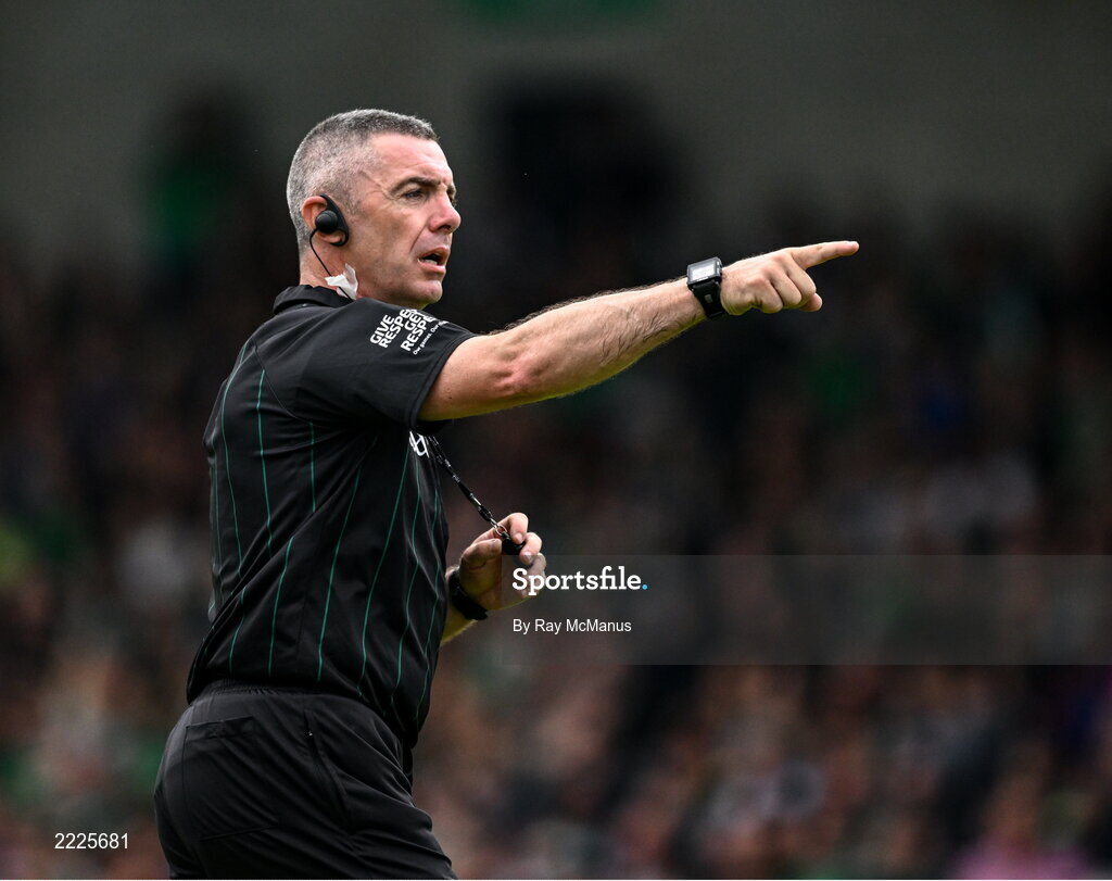 8 May 2022; Referee Liam Gordon during the Munster GAA Hurling Senior Championship Round 3 match between Limerick and Tipperary at TUS Gaelic Grounds in Limerick. Photo by Ray McManus/Sportsfile