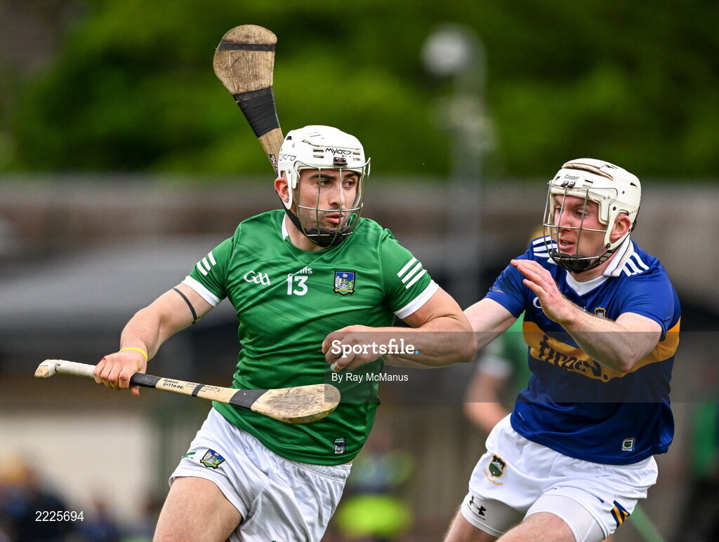 8 May 2022; Aaron Gillane of Limerick is tackled by Seamus Kennedy of Tipperary during the Munster GAA Hurling Senior Championship Round 3 match between Limerick and Tipperary at TUS Gaelic Grounds in Limerick. Photo by Ray McManus/Sportsfile