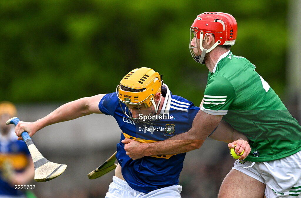 8 May 2022; Mark Kehoe of Tipperary is tackled by Barry Nash of Limerick during the Munster GAA Hurling Senior Championship Round 3 match between Limerick and Tipperary at TUS Gaelic Grounds in Limerick. Photo by Ray McManus/Sportsfile