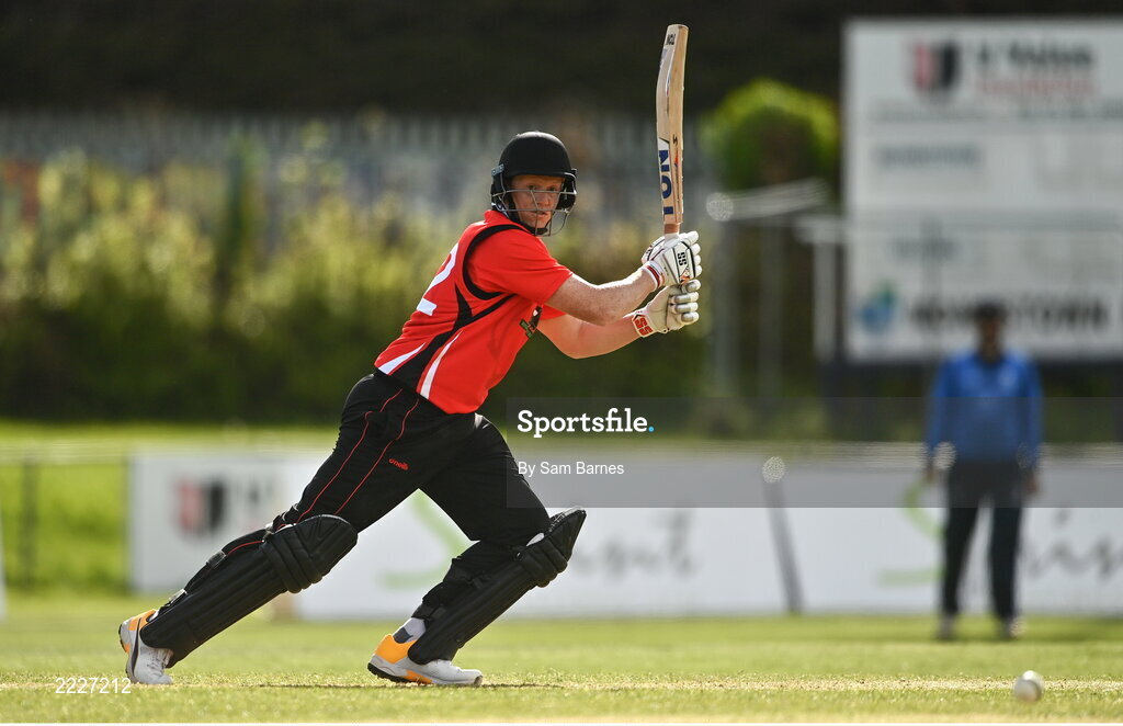 10 May 2022; Kevin O'Brien of Munster Reds plays a shot during the Cricket Ireland Inter-Provincial Cup match between Leinster Lightning and Munster Reds at Pembroke Cricket Club in Dublin. Photo by Sam Barnes/Sportsfile