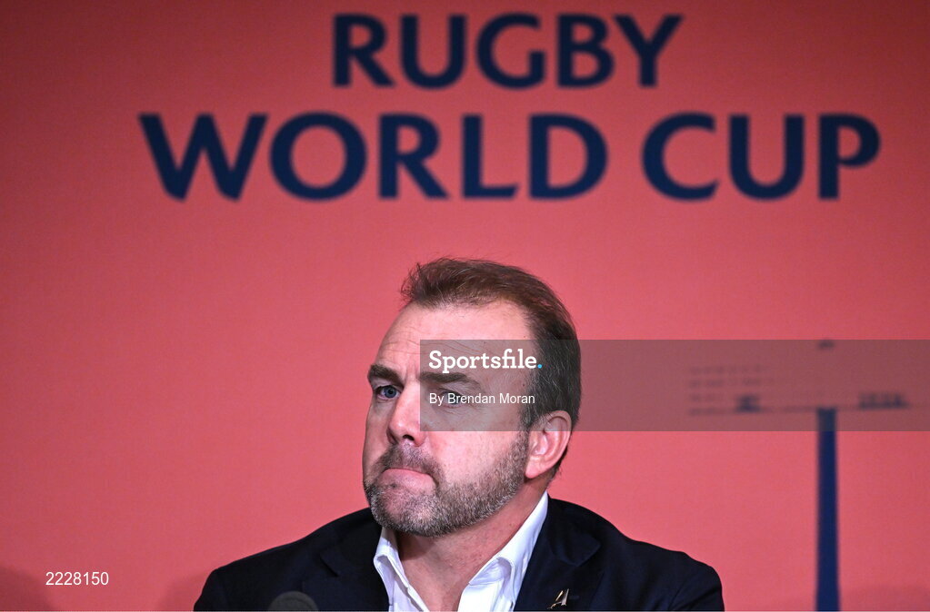12 May 2022; Rugby Australia chief executive officer Andy Marinos speaking during a World Rugby Cup future hosts announcement media conference at the Convention Centre in Dublin. Photo by Brendan Moran/Sportsfile