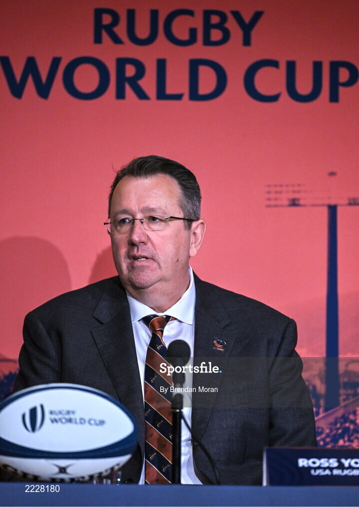 12 May 2022; USA Rugby chief executive officer Ross Young speaking during a World Rugby Cup future hosts announcement media conference at the Convention Centre in Dublin. Photo by Brendan Moran/Sportsfile