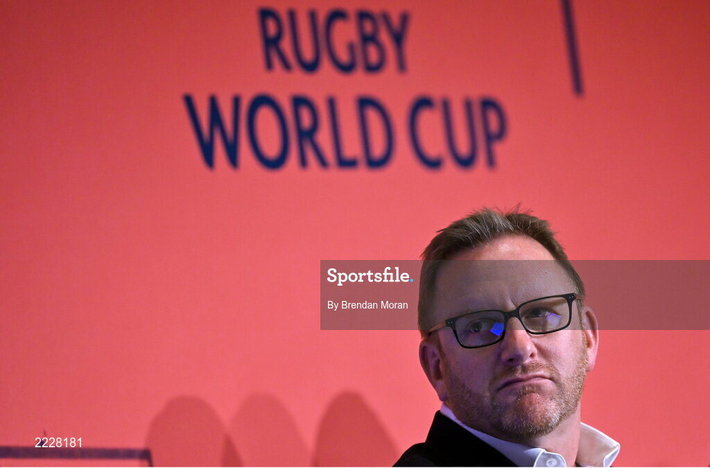12 May 2022; World Rugby chief executive Alan Gilpin speaking during a World Rugby Cup future hosts announcement media conference at the Convention Centre in Dublin. Photo by Brendan Moran/Sportsfile