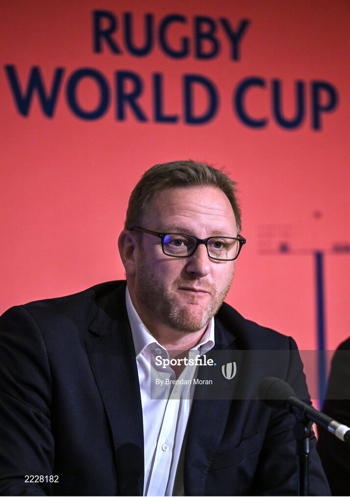 12 May 2022; World Rugby chief executive Alan Gilpin speaking during a World Rugby Cup future hosts announcement media conference at the Convention Centre in Dublin. Photo by Brendan Moran/Sportsfile