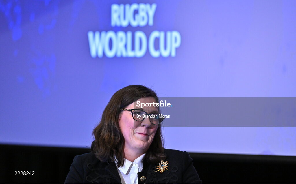 12 May 2022; World Rugby director of women’s rugby Sally Horrox during a World Rugby Cup future hosts announcement media conference at the Convention Centre in Dublin. Photo by Brendan Moran/Sportsfile
