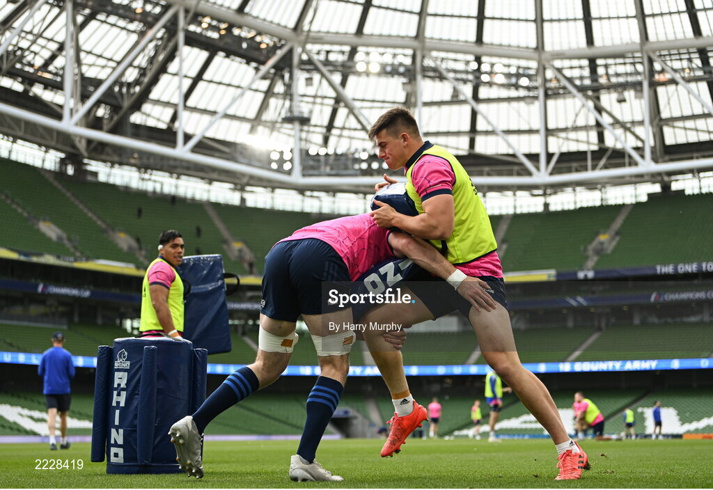 13 May 2022; Dan Sheehan, right, and James Ryan during a Leinster Rugby captain's run at the Aviva Stadium in Dublin. Photo by Harry Murphy/Sportsfile