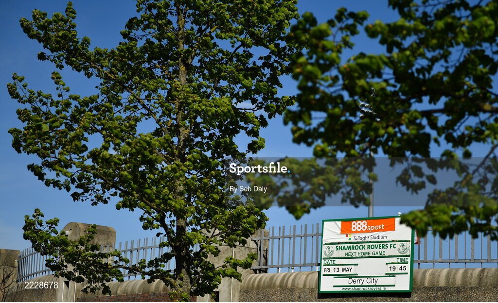 13 May 2022; A stadium sign advertising this evening's match before the SSE Airtricity League Premier Division match between Shamrock Rovers and Derry City at Tallaght Stadium in Dublin. Photo by Seb Daly/Sportsfile