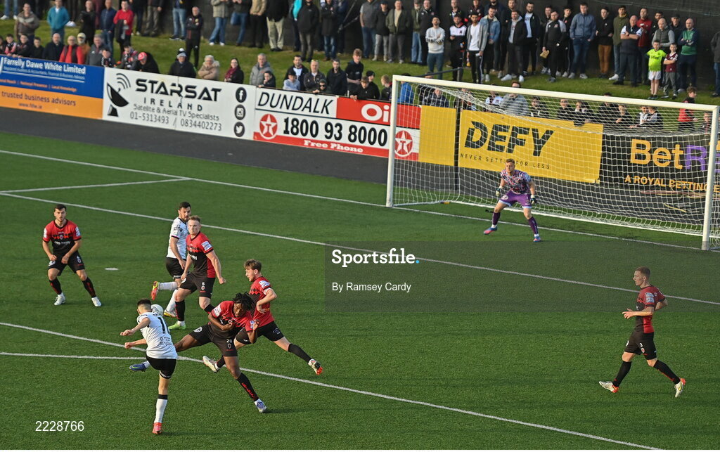 13 May 2022; Steven Bradley of Dundalk shoots at goal during the SSE Airtricity League Premier Division match between Dundalk and Bohemians at Oriel Park in Dundalk, Louth. Photo by Ramsey Cardy/Sportsfile