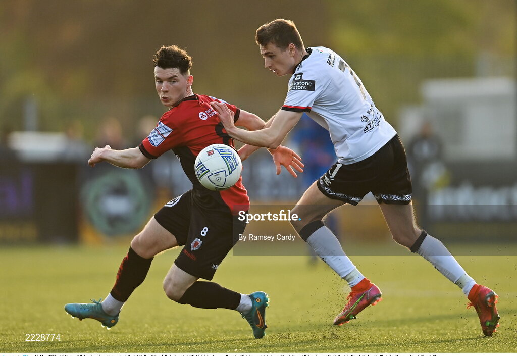 13 May 2022; Ali Coote of Bohemians in action against Daniel Kelly of Dundalk during the SSE Airtricity League Premier Division match between Dundalk and Bohemians at Oriel Park in Dundalk, Louth. Photo by Ramsey Cardy/Sportsfile