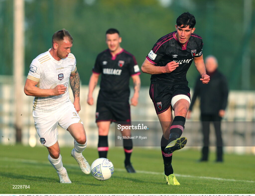 13 May 2022; Joe Manley of Wexford in action against Stephen Walsh of Galway United during the SSE Airtricity League First Division match between Wexford and Galway United at Ferrycarrig Park in Wexford. Photo by Michael P Ryan/Sportsfile