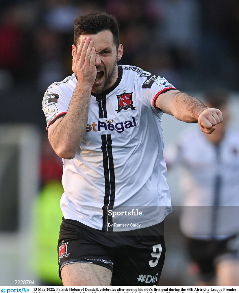 13 May 2022; Patrick Hoban of Dundalk celebrates after scoring his side's first goal during the SSE Airtricity League Premier Division match between Dundalk and Bohemians at Oriel Park in Dundalk, Louth. Photo by Ramsey Cardy/Sportsfile