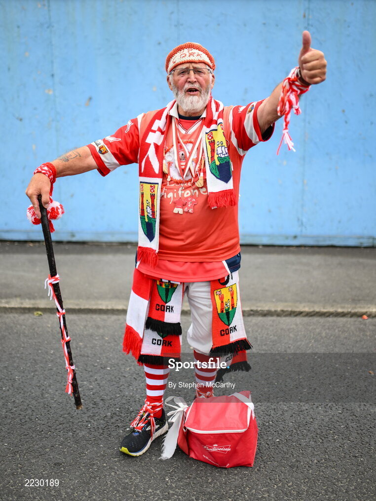15 May 2022; Cork supporter Joe Cole, from Charleville, arrives for the Munster GAA Hurling Senior Championship Round 4 match between Waterford and Cork at Walsh Park in Waterford. Photo by Stephen McCarthy/Sportsfile