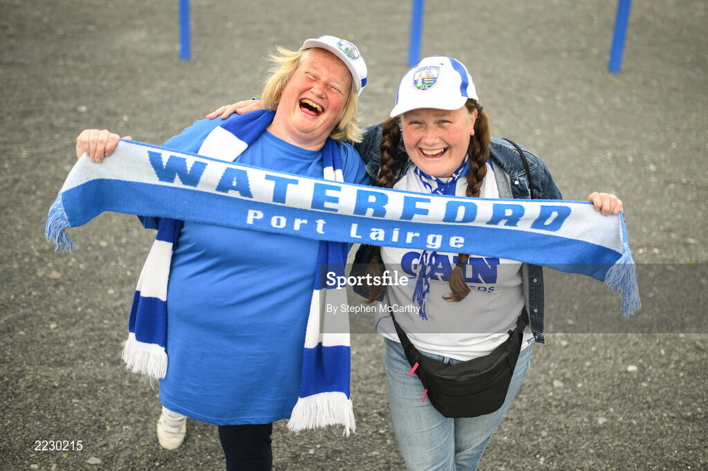 15 May 2022; Waterford supporters Aoife, left, and Shelly Phelan before the Munster GAA Hurling Senior Championship Round 4 match between Waterford and Cork at Walsh Park in Waterford. Photo by Stephen McCarthy/Sportsfile