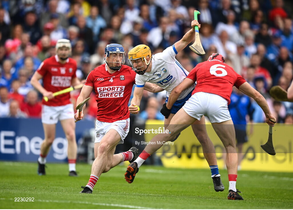 15 May 2022; Jack Prendergast of Waterford in action against Ciarán Joyce, 6, and Sean O’Donoghue of Cork during the Munster GAA Hurling Senior Championship Round 4 match between Waterford and Cork at Walsh Park in Waterford. Photo by Stephen McCarthy/Sportsfile